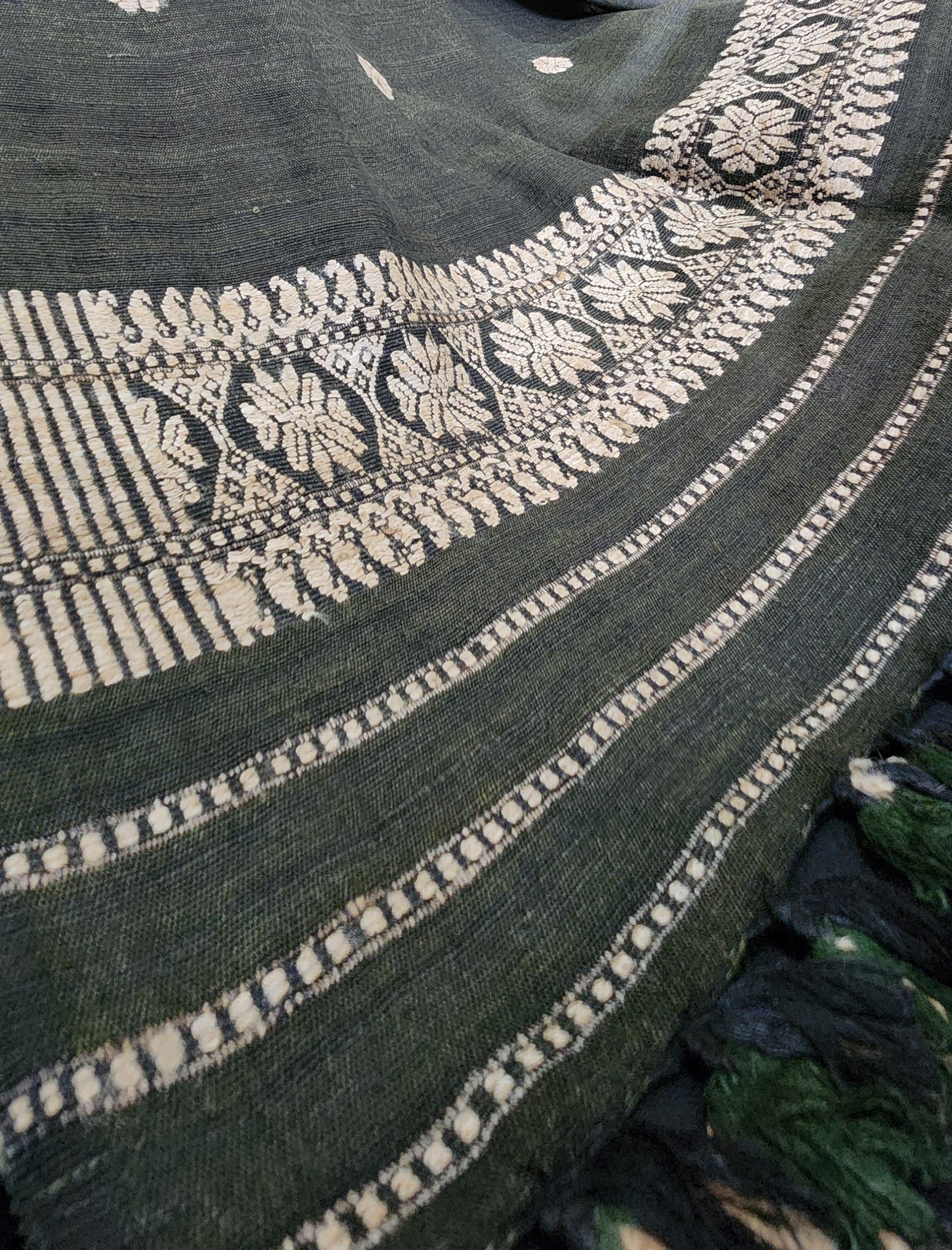 Design/Work: Muga Ghisa thread floral buttis with traditional woven borders